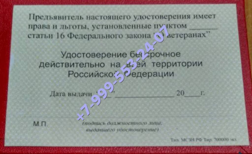 Удостоверение ветерана боевых действий 25000 руб + пересылка